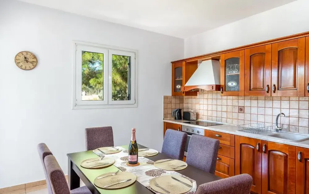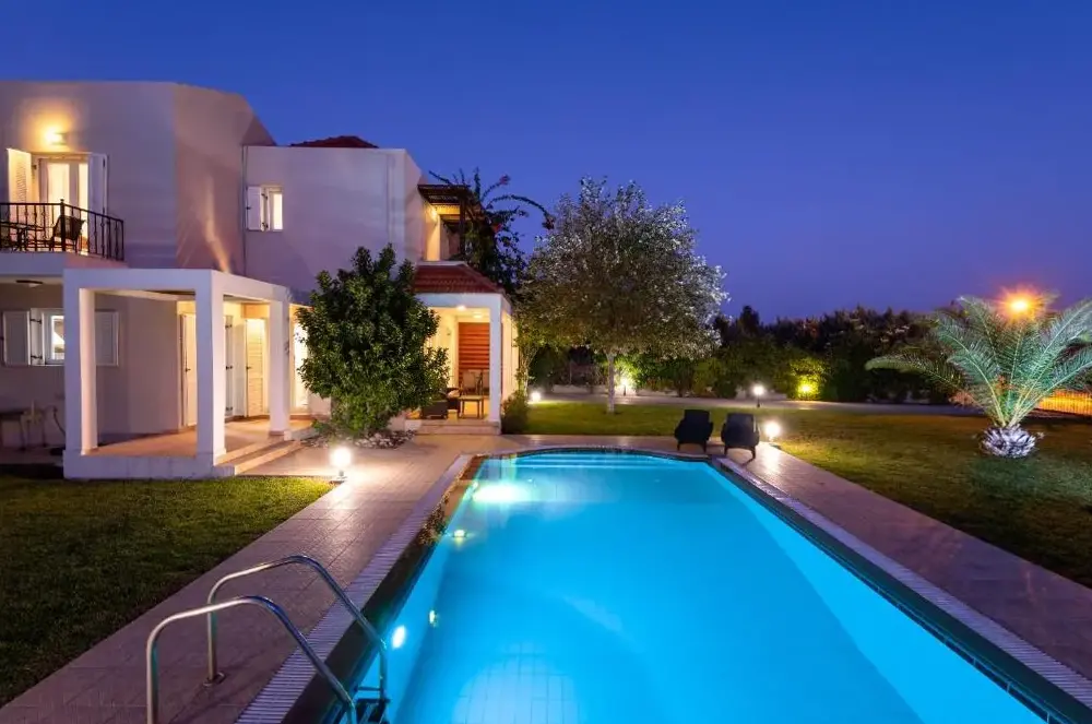 Beautiful modern villa in lovely well kept grounds with a pool. Quiet location near to shops and local tavernas. Well equipped and spotlessly clean. Owners were very helpful with information and advice.